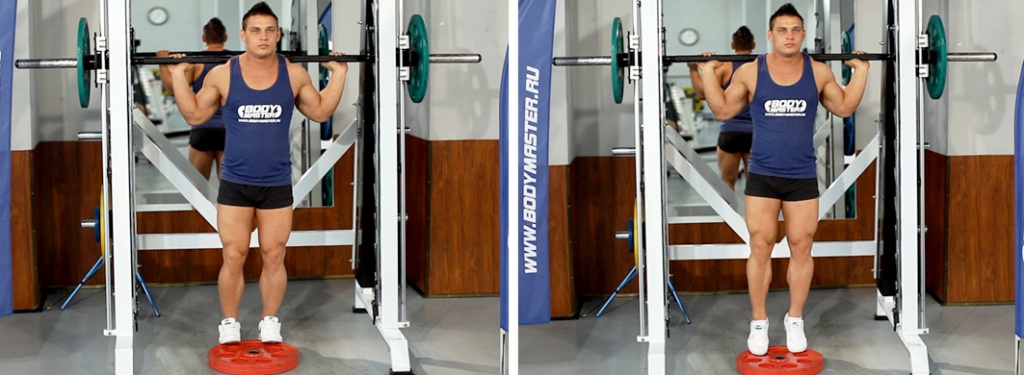 Это упражнение позволяет увеличить амплитуду движения и, следовательно, более эффективно проработать икроножные мышцы. Вам понадобится небольшая ступенька или платформа.