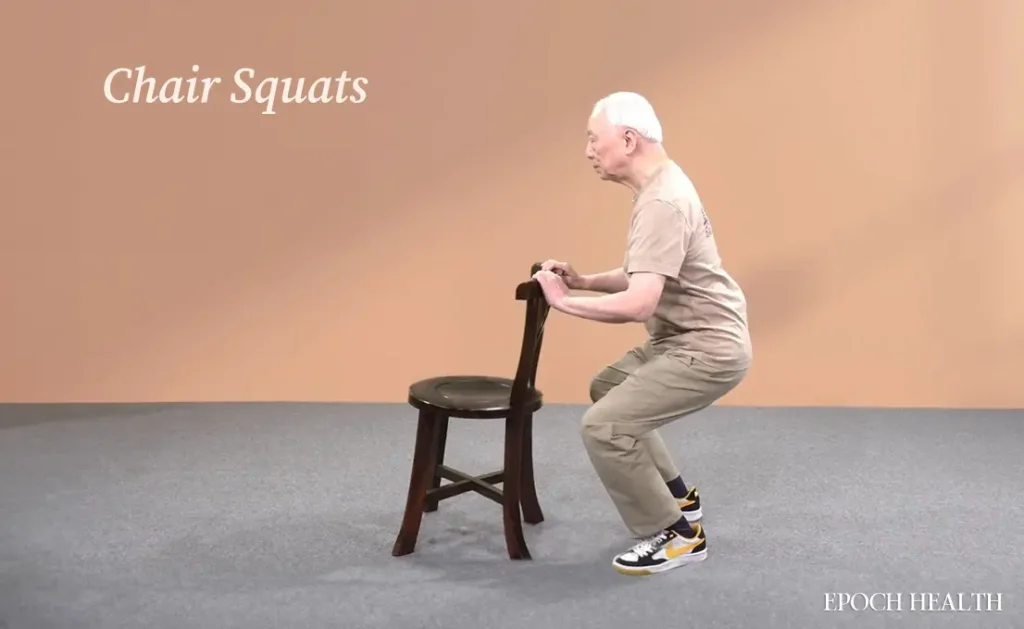 - Упражнение 1: Приседания со стулом