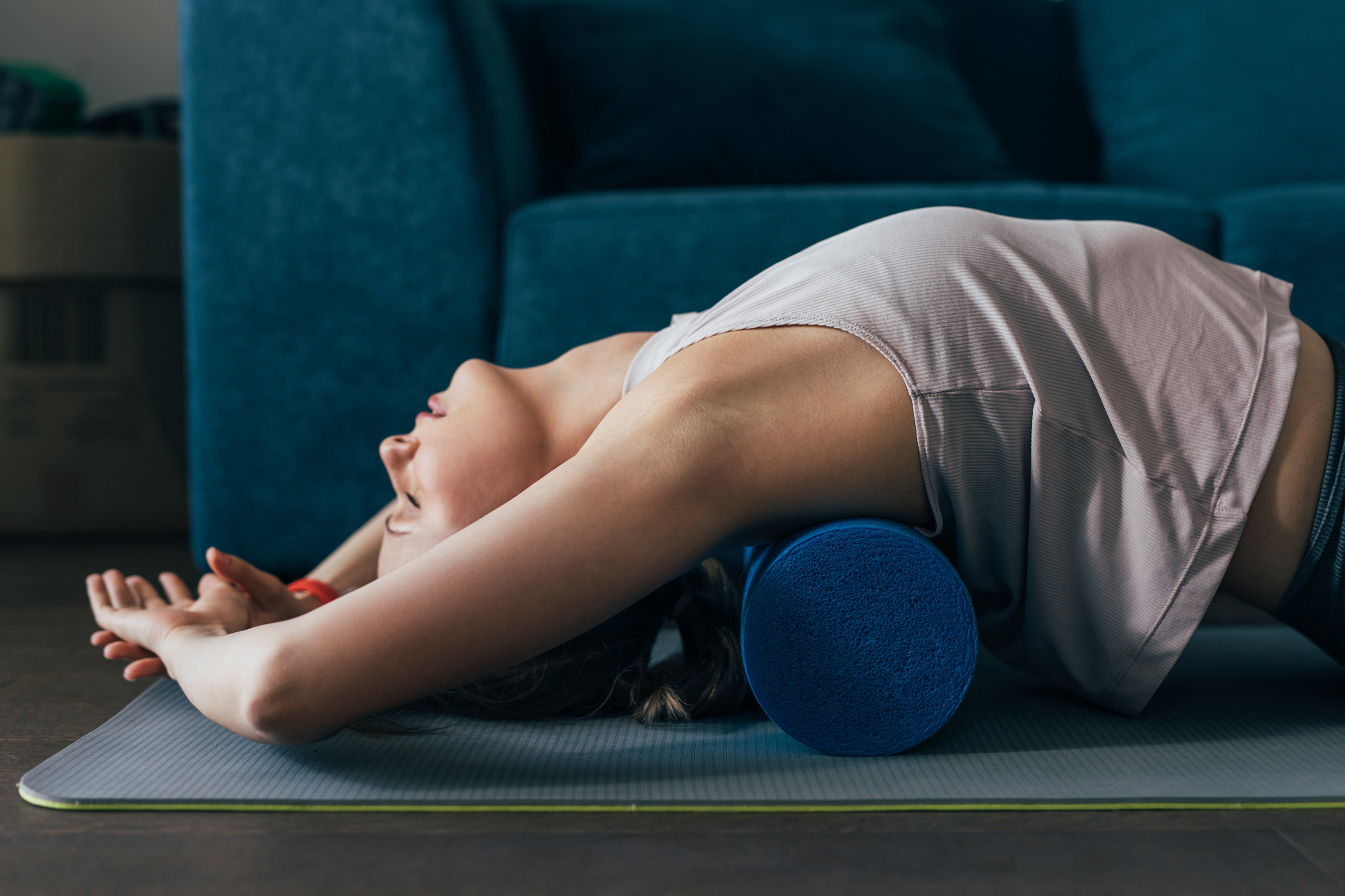 В какой-то момент мы наткнулись на информацию о позах для вытяжения позвоночника. Идея показалась нам интересной, и мы решили попробовать. Сначала мы пытались делать упражнения без вспомогательных средств, но это оказалось не очень удобно и эффективно. Тогда мы решили использовать валик.