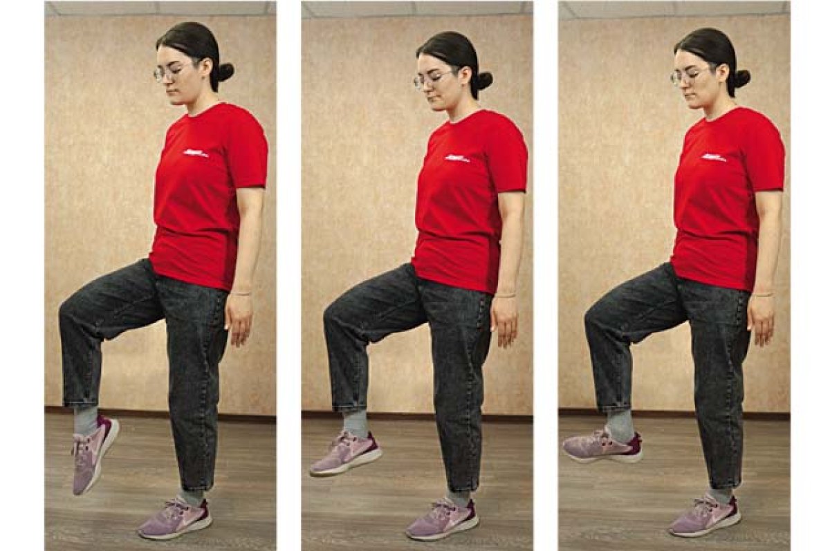 - Ходьба на месте. Просто шагайте на месте, поднимая колени. Выполняйте упражнение в течение 1-2 минут.